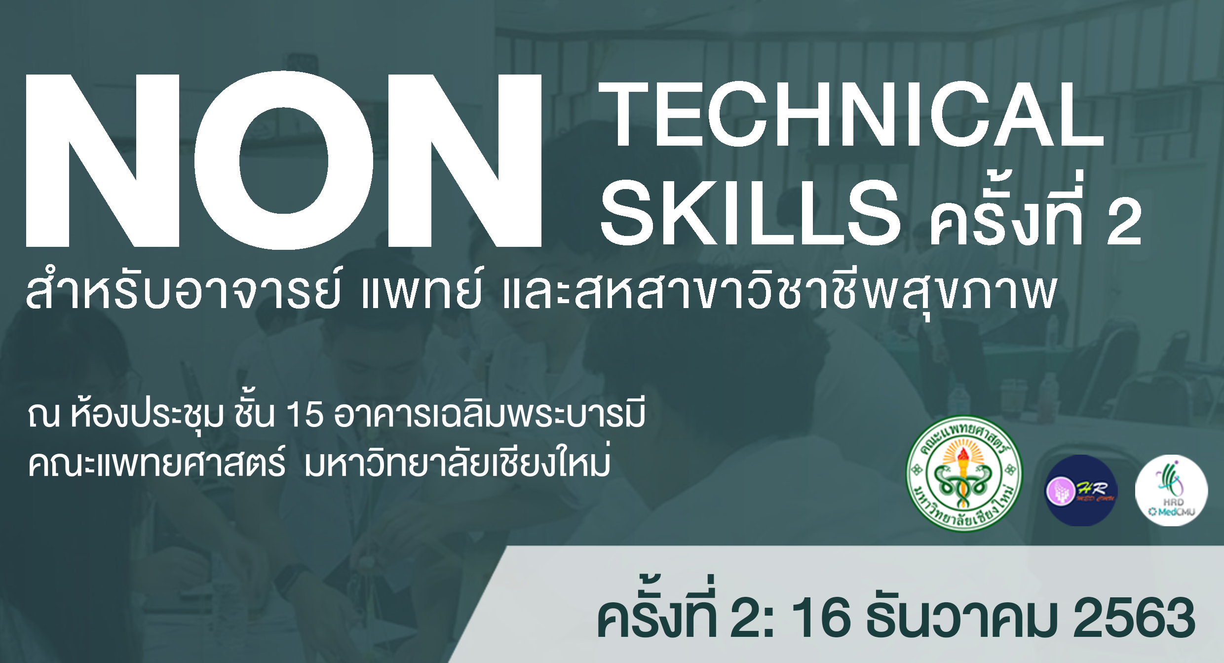 [vc_row][vc_column][vc_custom_heading text=”ขอเชิญคณาจารย์ และบุคลากรสหสาขาวิชาชีพ สังกัดคณะแพทยศาสตร์ เข้าร่วมโครงการอบรมเชิงปฏิบัติการ เรื่อง “Non-Technical Skills” สำหรับสหสาขาวิชาชีพ ประจำปี 2563 ครั้งที่ 2″ font_container=”tag:h2|text_align:left|line_height:1.5″][vc_column_text]วันที่