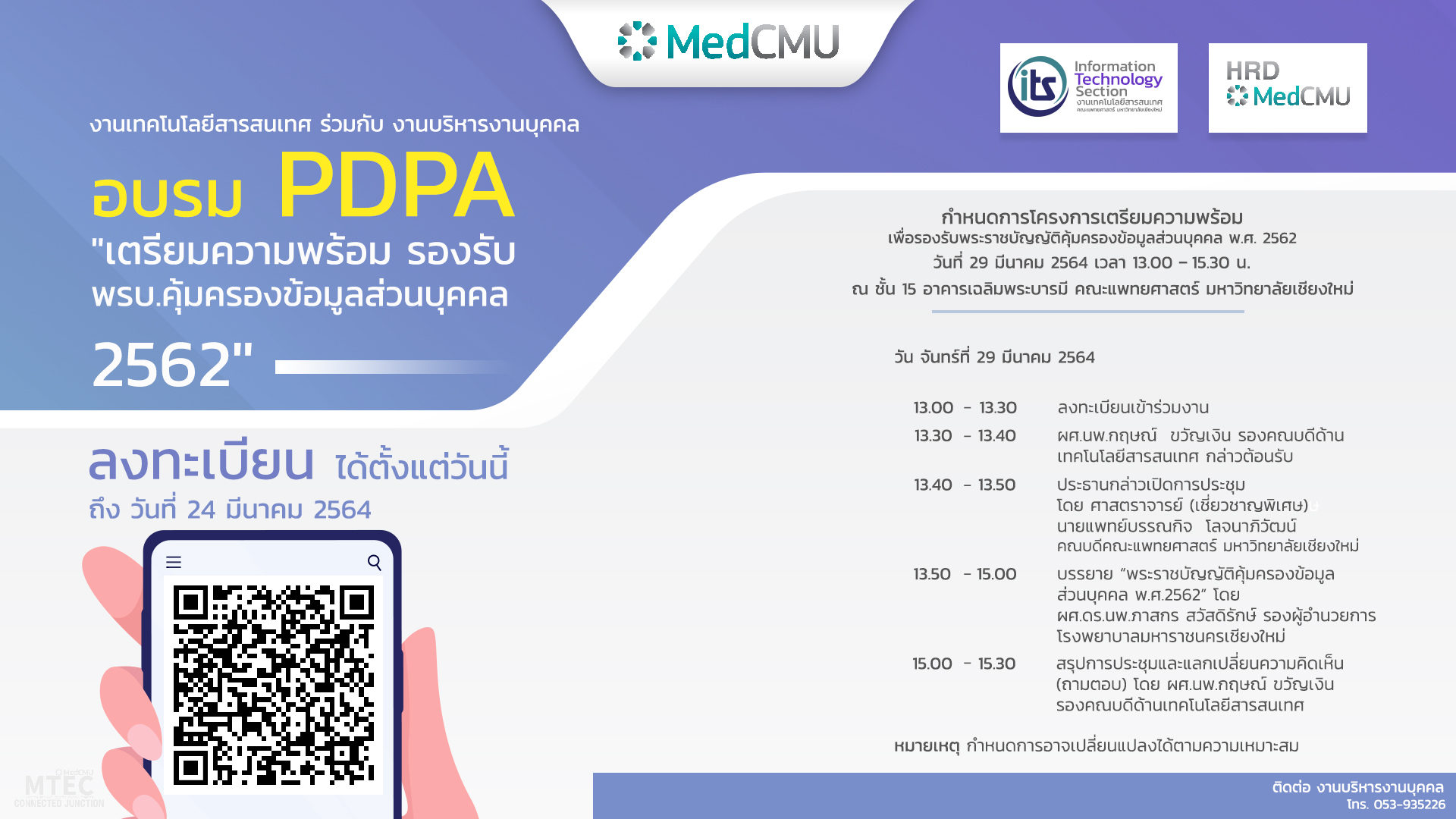 [vc_row][vc_column css=”.vc_custom_1615779444947{border-radius: 1px !important;}”][vc_column_text][/vc_column_text][/vc_column][/vc_row][vc_row][vc_column width=”1/6″][/vc_column][vc_column width=”2/3″][vc_column_text] โครงการเตรียมความพร้อมเพื่อรองรับพระราชบัญญัติคุ้มครองข้อมูลส่วนบุคคล พ.ศ.2562 วันที่ 29 มีนาคม 2564 เวลา 13.30